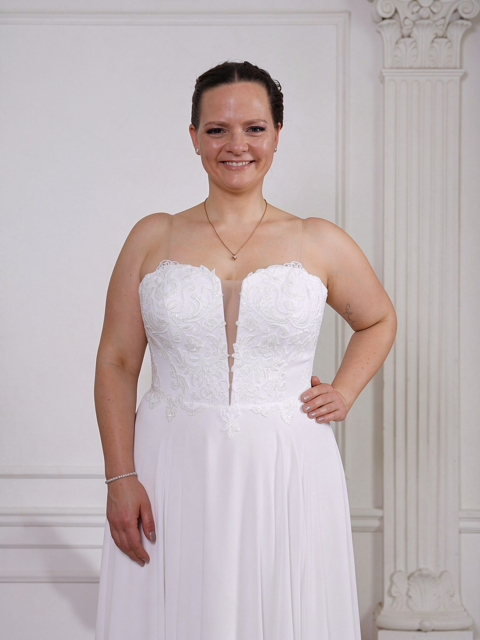 Unseren Hochzeitskleidern werden individuell nach deinen Maßen angefertigt hochwertigen Materialien und die liebevolle Verarbeitung machen es zu einem wahren Traumkleid, sollte somit eine perfekte Passform bieten. Verschiedenen Rückenausschnitt und das Dekolleté verleihen dem jeden Brautkleid eine besonders feminine Note.