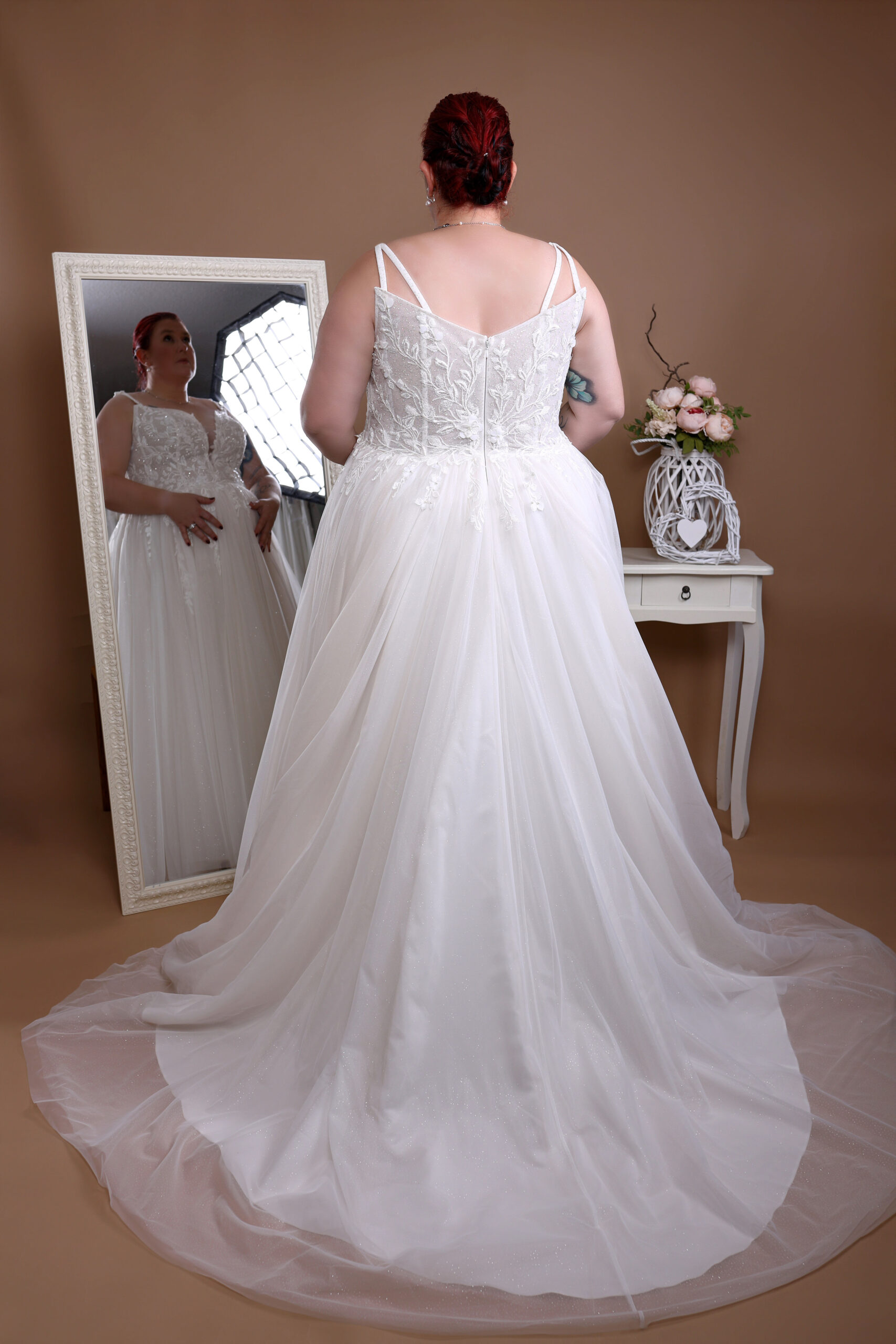 Als Hersteller von Brautkleidern in großen Größen legen wir besonderen Wert darauf, dass jede Braut sich schön und wohl fühlt. Dieses Modell ist eine ideale Wahl für Brautmodensalons, die hochwertige Plus-Size Brautmode anbieten möchten.