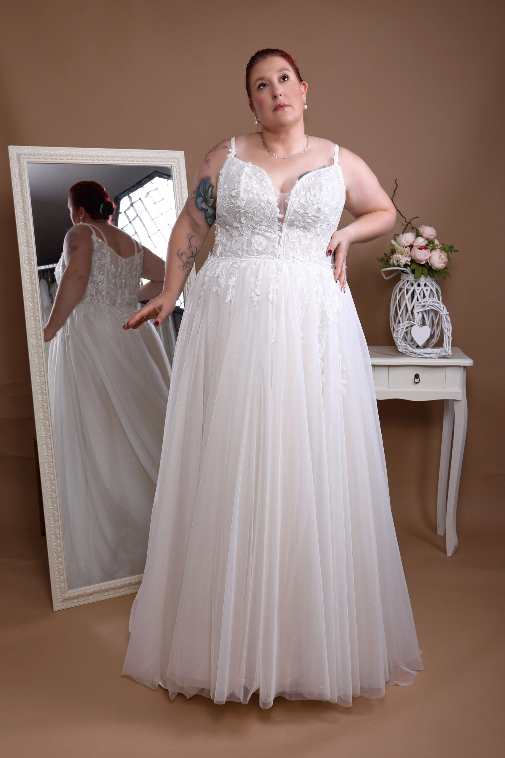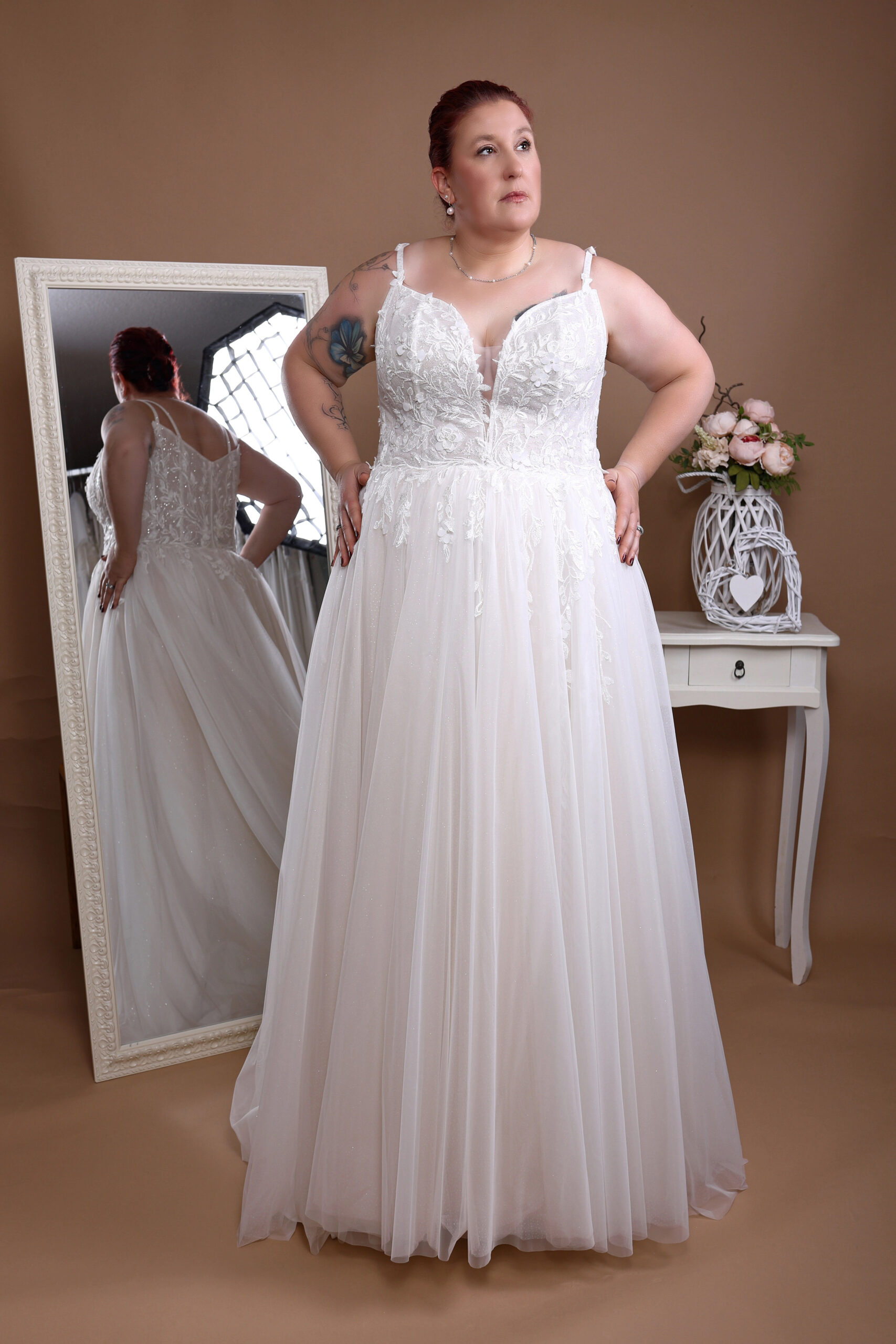 Dieses Plus-Size Brautkleid wurde speziell für kurvige Bräute entwickelt und bietet eine perfekte Balance aus Komfort, Eleganz und optimaler Passform. Der durchdachte Schnitt unterstützt die Figur und sorgt für ein selbstbewusstes Tragegefühl am Hochzeitstag.