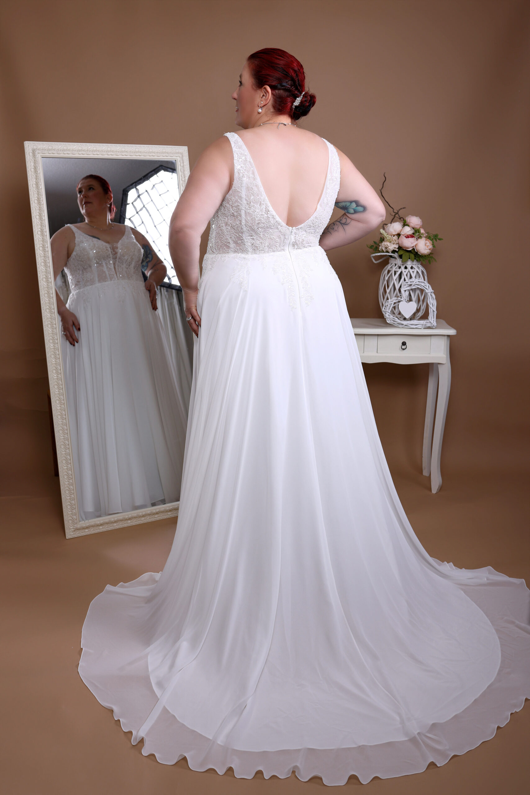 Unseren Hochzeitskleidern werden individuell nach deinen Maßen angefertigt hochwertigen Materialien und die liebevolle Verarbeitung machen es zu einem wahren Traumkleid, sollte somit eine perfekte Passform bieten. Verschiedenen Rückenausschnitt und das Dekolleté verleihen dem jeden Brautkleid eine besonders feminine Note.