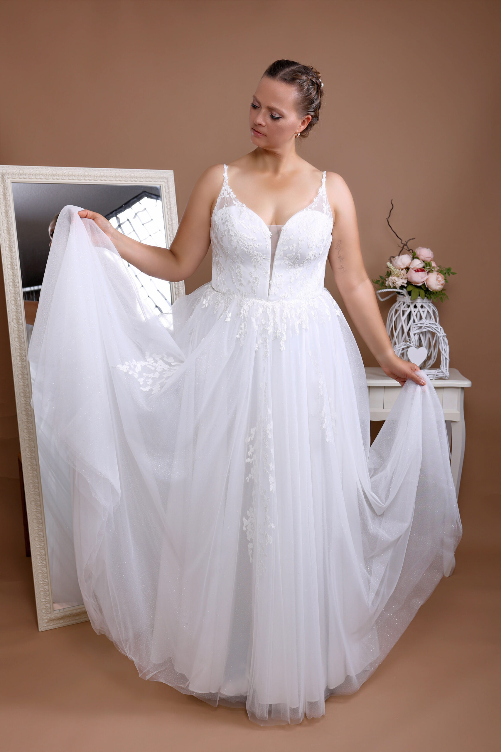 Unsere Kollektionen sind so gestaltet, dass sie sich wunderbar für die kurvige Braut ab Konfektionsgröße 42 bis 62 eignen. Wir haben verschiedene Schnitte und Stile und geben Dir wertvolle Ratschläge für die Wahl des perfekten Kleides. Jedes Detail wird sorgsam verarbeitet, damit dein Hochzeitskleid deiner Persönlichkeit gerecht wird.