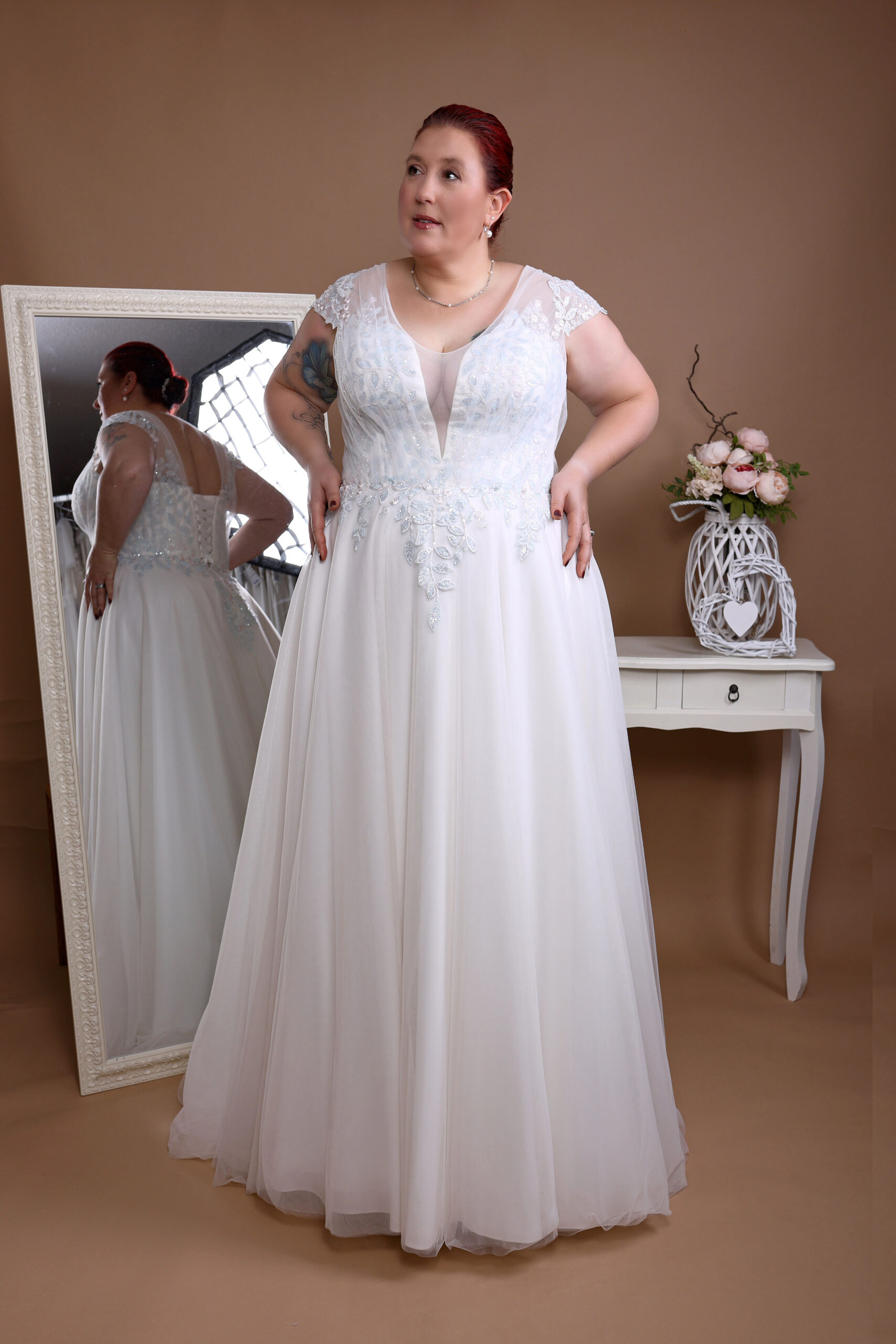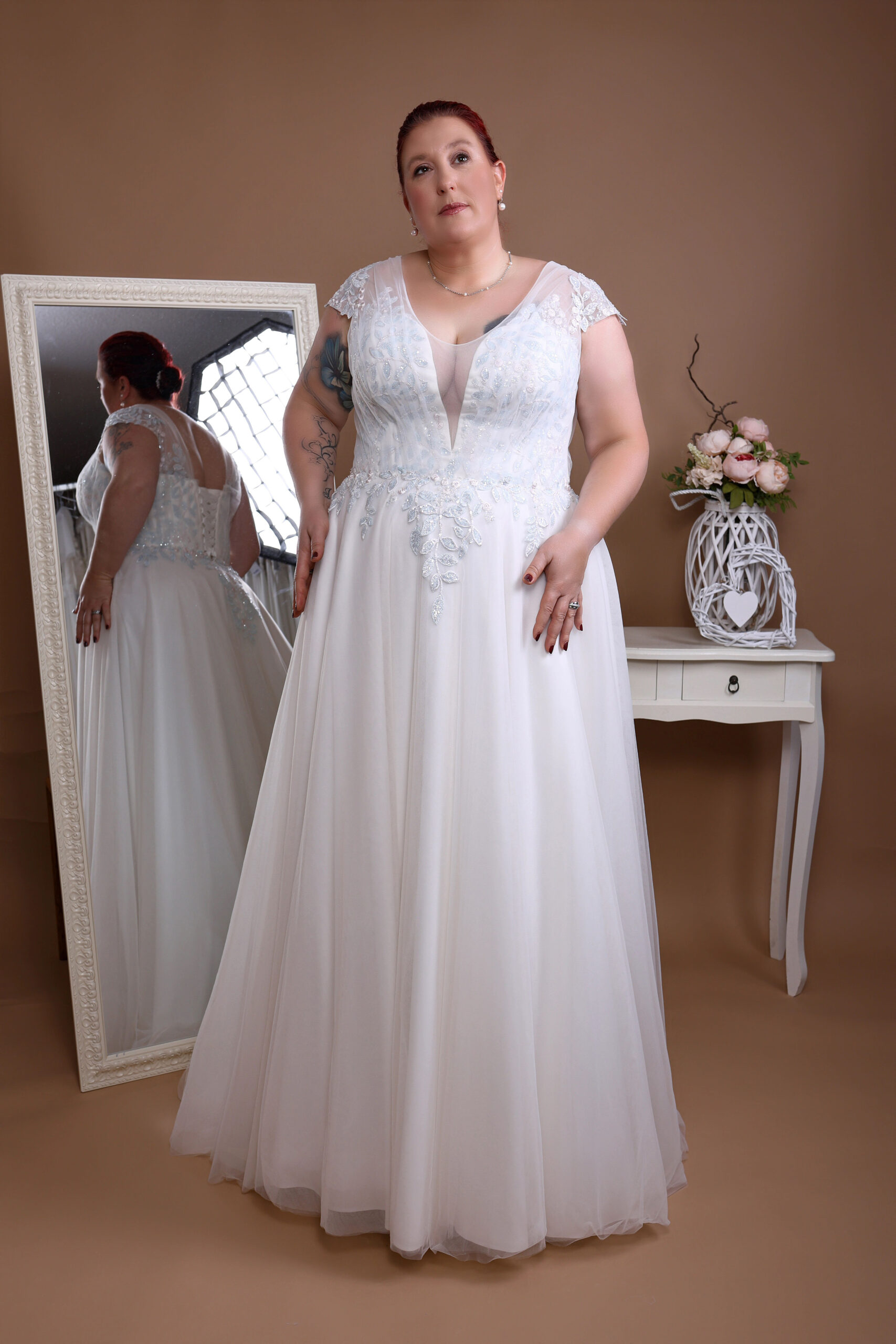 Unsere Kollektionen sind so gestaltet, dass sie sich wunderbar für die kurvige Braut ab Konfektionsgröße 42 bis 62 eignen. Wir haben verschiedene Schnitte und Stile und geben Dir wertvolle Ratschläge für die Wahl des perfekten Kleides. Jedes Detail wird sorgsam verarbeitet, damit dein Hochzeitskleid deiner Persönlichkeit gerecht wird.